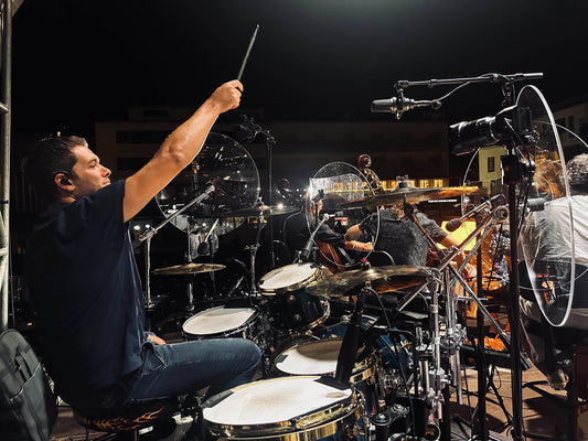 Cymbal / Drum baffles are an effective alternative to the dreaded 'drummer's cage'- the plexiglass/perspex drum screen which sucks the energy out of the room, ruins the vibe and is hated by most drummers.